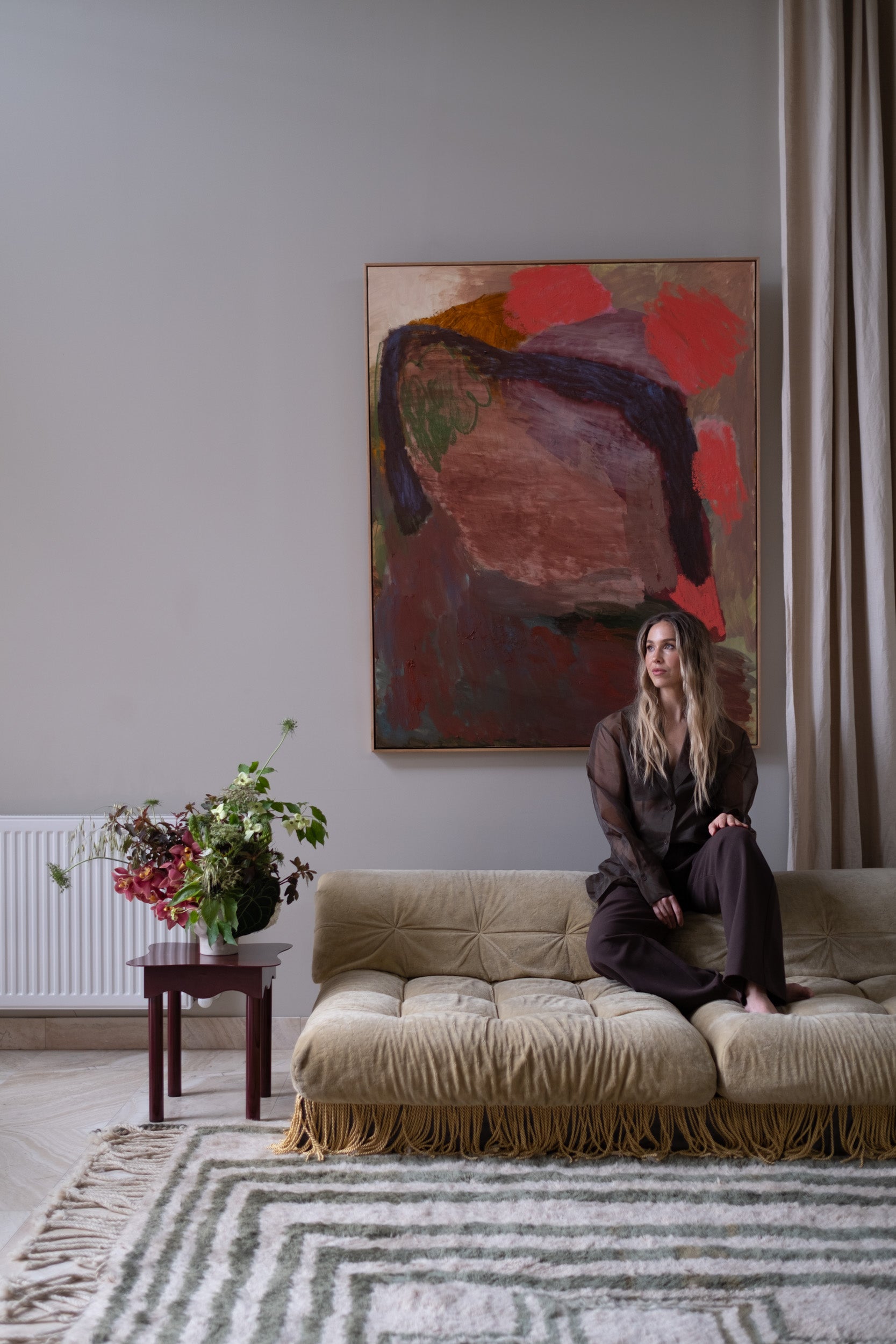 Her process is an exploration of contrasts, where harmonious tones meet bold, unexpected colours and rough, chaotic textures give way to moments of calm. Winfield’s work speaks to the realities of life, the tension between the demands placed on women and their desire for freedom and carefreeness. With each piece, she invites the viewer to witness a reflection of her inner emotional world, navigating the beauty and struggle of being a woman and mother.
